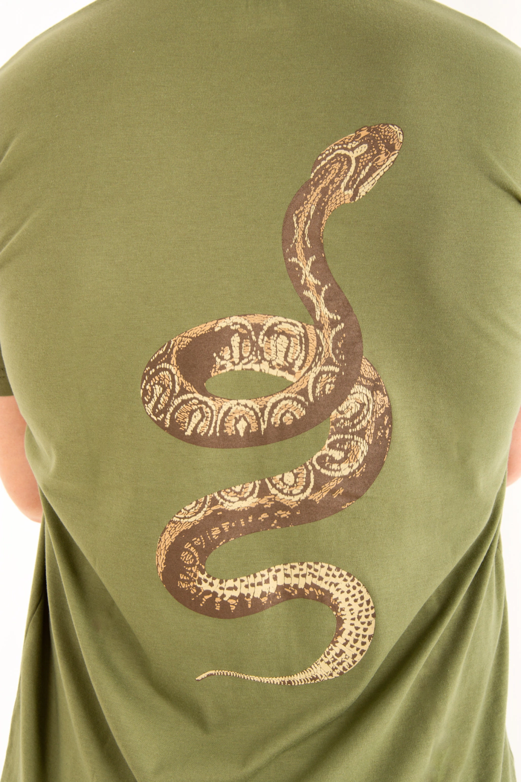 Remera manga corta, color verde militar. Estilo de cuello redondo y refuerzo de hombro para comodidad y retención de ajuste. Confeccionada en algodón 40/1 peinado, lo que le da suavidad, confort y estabilidad a la tela.